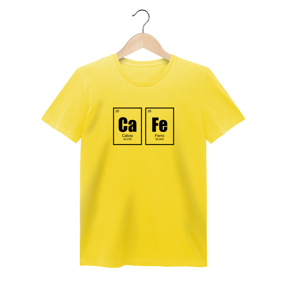 Destaque seu bom humor com esta camiseta criativa e cheia de personalidade! A estampa traz dois elementos do estilo tabela periódica — Cálcio (Ca) e Ferro (Fe) — apresentados em quadros limpos e marcantes, brincando visualmente com a palavra “café” e remetendo àquela força necessária para encarar o dia. Perfeita para amantes de química, estudantes, professores ou qualquer pessoa que vive movida a cafeína (literalmente ou não), esta peça une simplicidade, humor inteligente e estilo. A arte em traços fortes e minimalistas cria uma estampa moderna que chama atenção sem exageros.